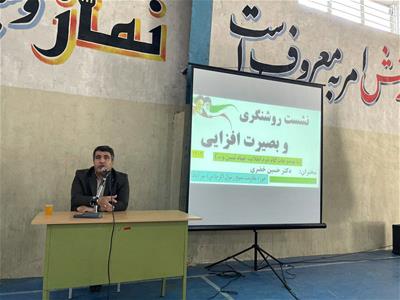 به گزارش روابط عمومی فرمانداری میرآباد؛ روز یکشنبه مورخ 22 مرداد ماه 1402 "حسین خضری" فرماندار شهرستان در نشست روشنگری و بصیرت که به همت حوزه بسیج مقاومت رسول اکرم(ص) میرآباد و با حضور جمعی از شورای اداری، بسیجیان، دانش آموزان و اقشار مختلف مردم برگزار گردید، حضور یافت و در راستای تحقق شعار حماسه سیاسی، آگاه سازی، بصیرت، روشنگری و دعوت مردم به حضور حداکثری در انتخابات سخنرانی نمود.
