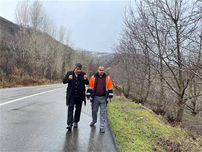 بازدید میدانی فرماندار میرآباد از محل نشست زمین در محور مواصلاتی میرآباد به سردشت