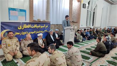 مراسم ضیافت افطاری در روستا مرزی دولتو نعلین به همت تیپ 36 انصار المهدی زنجان، با حضور "سید حسام الدین باب گوره" فرماندار میرآباد، امام جمعه، بخشداری مرکزی و جمعی از اهالی روستا و فرماندهان و پرسنل این تیپ و نیروی مرزبانی برگزار شد.