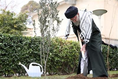 حضرت آیتالله خامنهای رهبر انقلاب اسلامی در هفته منابع طبیعی و همزمان با روز درختکاری صبح امروز سهشنبه سه اصله نهال کاشتند.