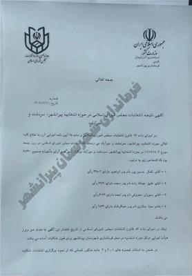 اعلام نتایج نهایی انتخابات دوازدهمین دوره مجلس شورای اسلامی حوزه پیرانشهر، سردشت و میرآباد.